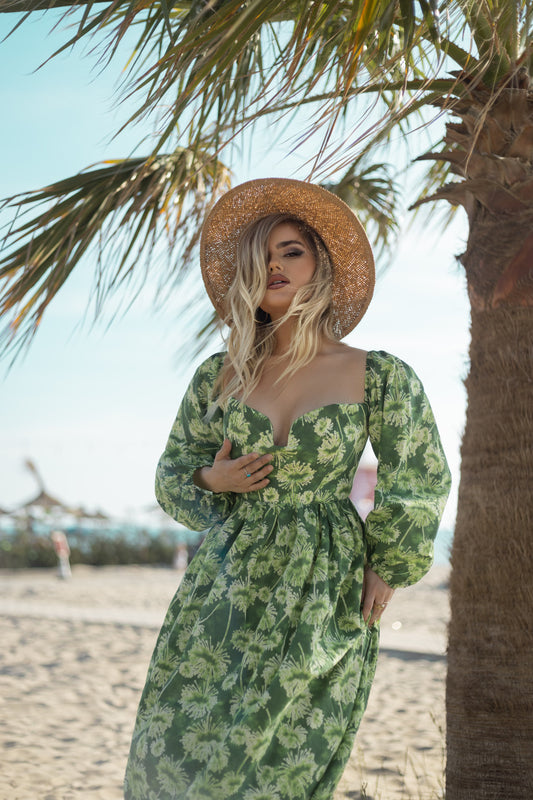 Fustan i gjate me lule. Ka menge te gjata dhe pjesen e bustit sipas trupit....