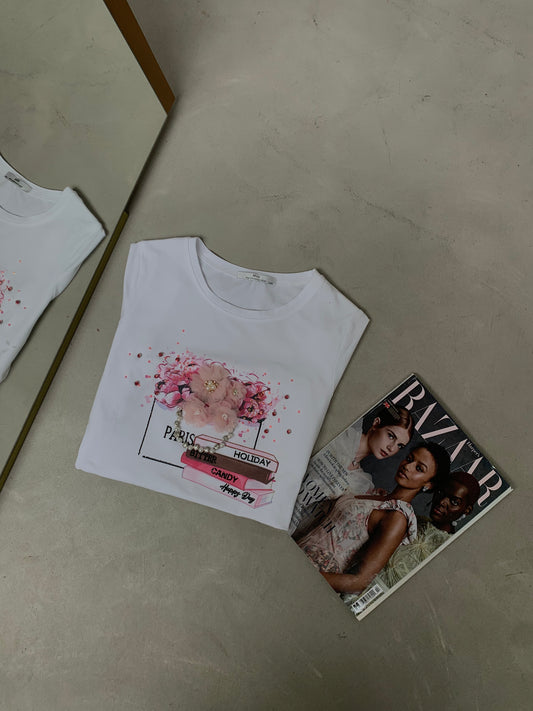 Bluze me krahe te shkurter me lule para. Ka material te plote dhe cilesi fantastike....