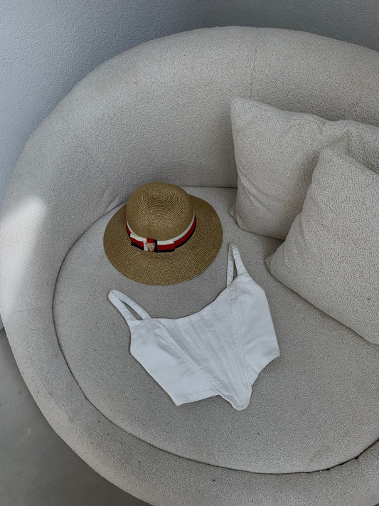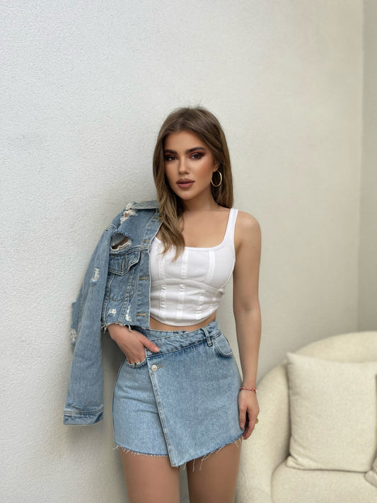 Crop i bardhe xhins me zinxhir mbrapa. Ka rripa dhe vjen ne forme V-je ne...