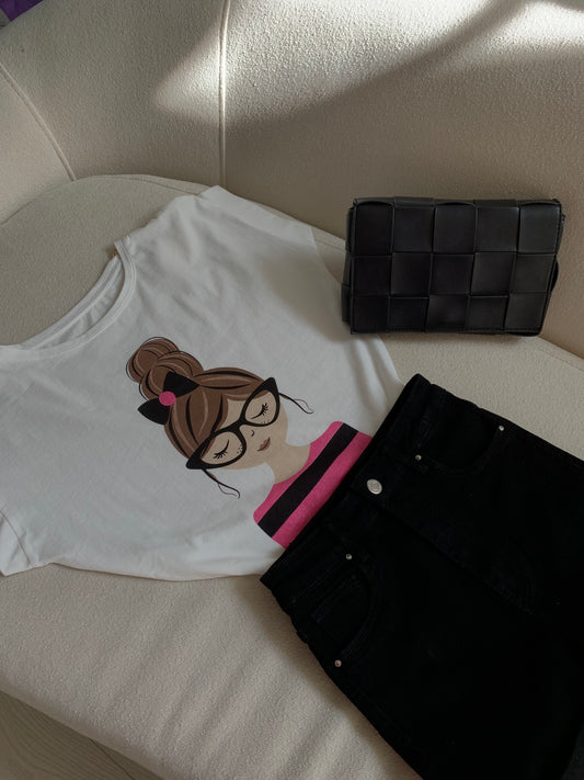 Bluze me krahe te shkurter dhe figure vajze para. Ka material te plote dhe cilesi...