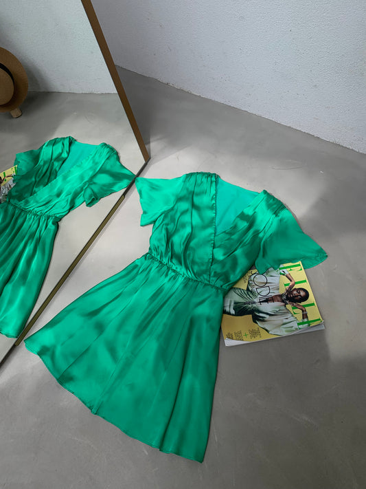 Fustan me menge te fryra ngjyre jeshile. Vjen me jake V-je dhe me pala ne...