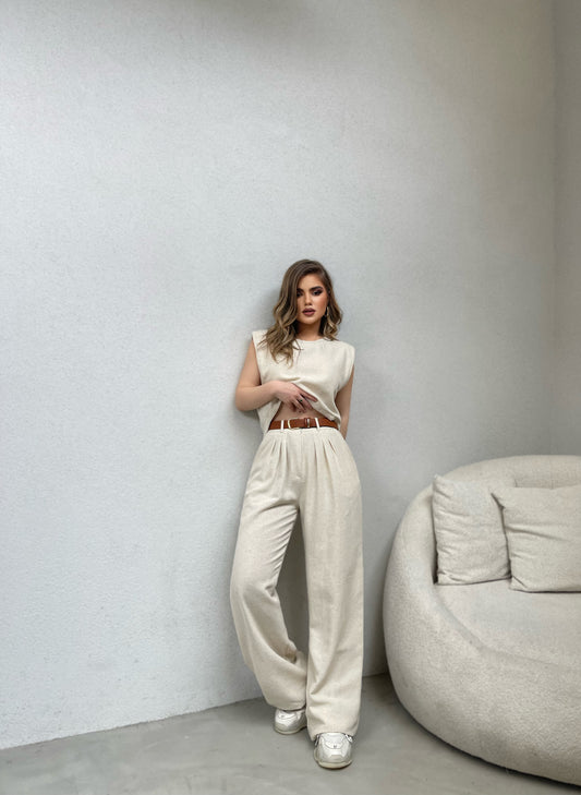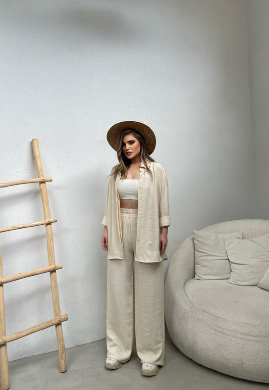 Set lino me bluze dhe pantallona te lirshme. Bluza vjen me menge zhapone dhe me...