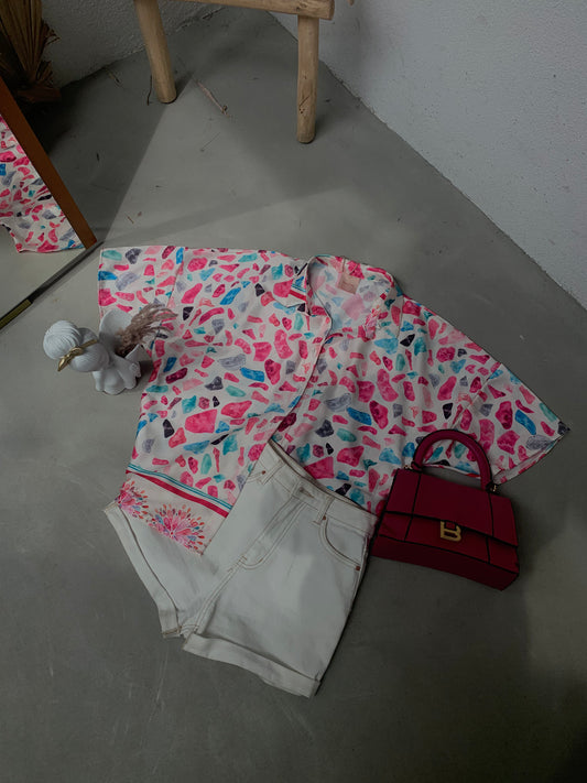 Bluze me krahe te shkurter me zemra perpara. Ka material te plote dhe cilesi fantastike....