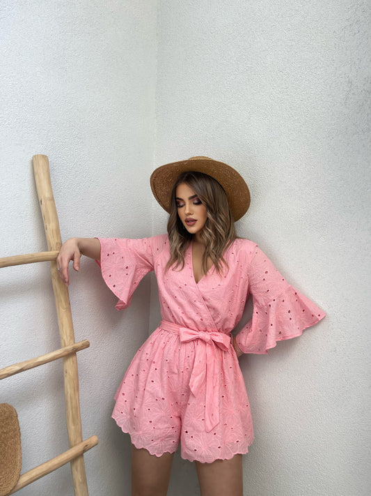 Jumpsuit lino me rrip ne bel. Vjen me krahe te shkurter dhe jake ne forme...