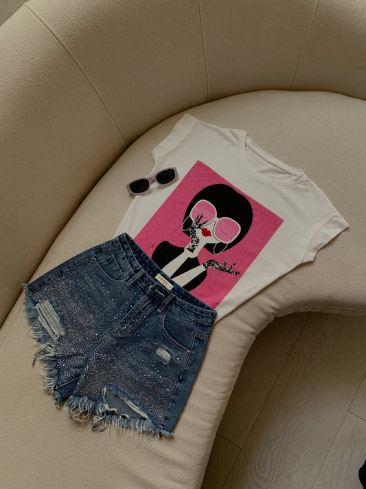 Bluze me krahe te shkurter dhe figure vajze perpara. Ka material te plote dhe cilesi...
