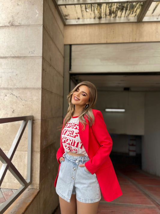 Bluze me krahe te shkurter me zinxhir ne pjesen perpara. Ka qendisje ne pjesen e...