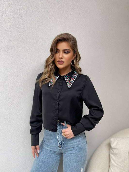 Kemish saten me dizenjo me lule me jake me kapak me menge te gjata. Kemisha...