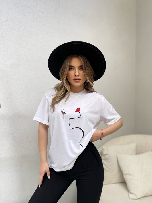 Bluze me krahe te shkurter me siluete vajze ne pjesen perpara. Ka gjatesi normale dhe...