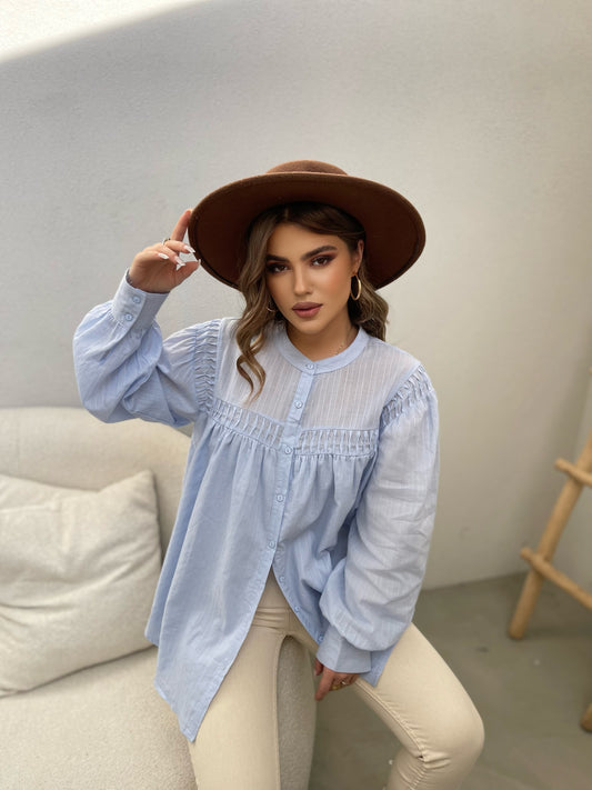 Kemishe e gjere e cila vjen ne dy ngjyra. E bardhe dhe bojeqielli. Jaka eshte...
