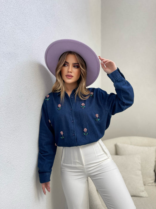Kemish xhins me lule me roze me jake me kapak me menge te gjata. Mberthimi...