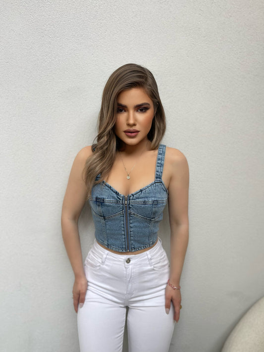 Crop xhins me zinxhir ne pjesen e perparme. Me rripa te trashe. I kombinueshme dhe...