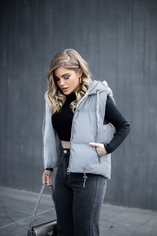 Jelek fosforishent me kapuc. Ka xhepa te bollshem me zinxhir. Mberthimi behet me ane te...