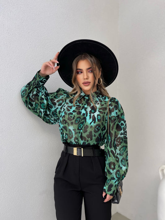 Kemishe saten me printe kafe. Ka jake ne forme V-je dhe material fantastik. Mberthimi behet...