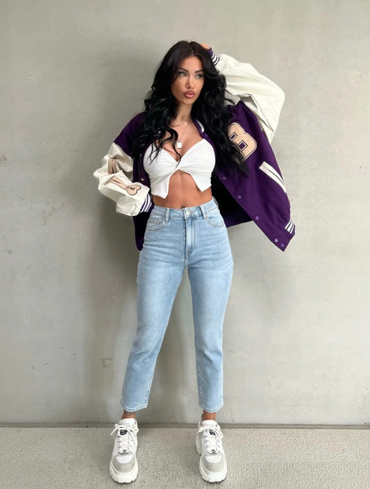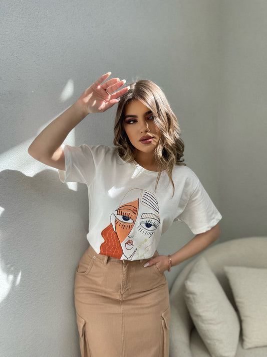 Bluze me krahe te shkurter me shkrim perpara AMOUR. Ka gjatesi normale dhe prerje te...