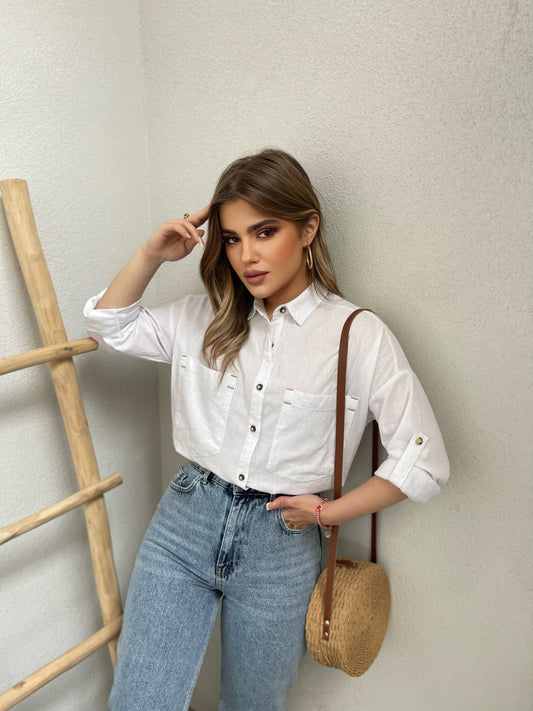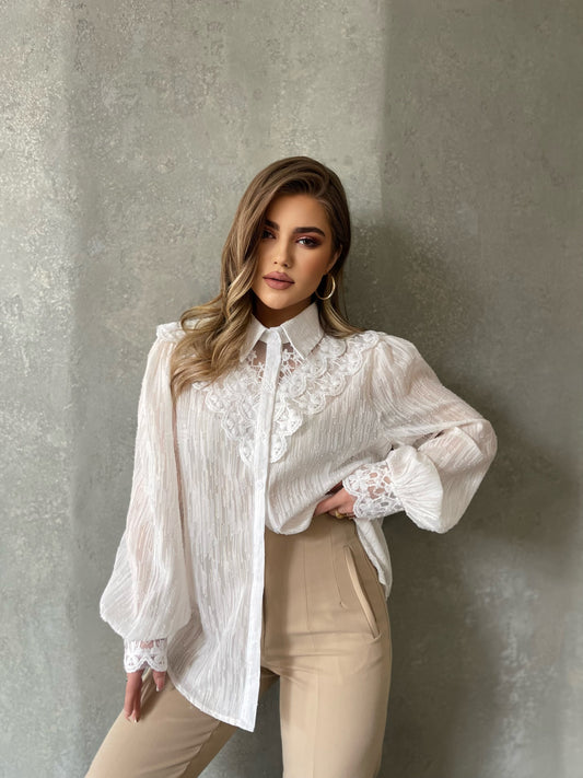 Kemish e bardhe me dantelle ne pjesen e mengeve dhe ne pjesen e perparme. Me...