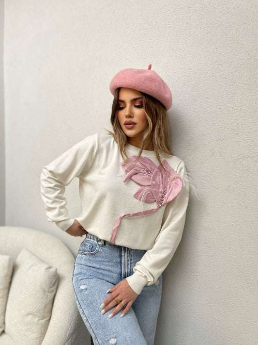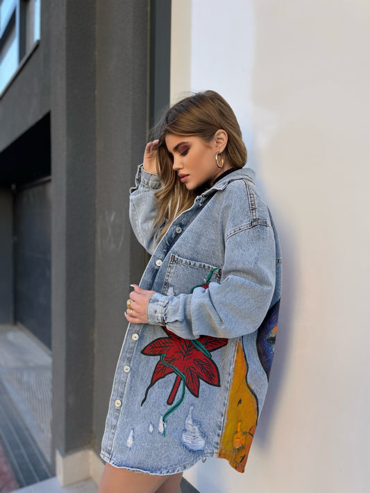 Bluze me jake rrethore me menge te gjata. Me detaj me lule ne pjesen e...
