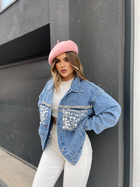 Xhaketa vjen ne ngjyren bojqiell, ka 2 xhepa te pjesa para te mbushura me lupsa...