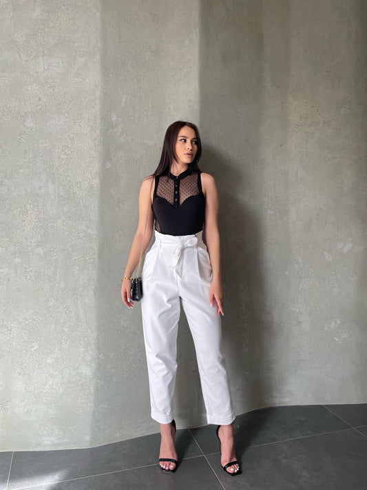 Pantallona klasike ne pala ne pjesen e belit me rrip dhe penca. Mberthimi behet me...