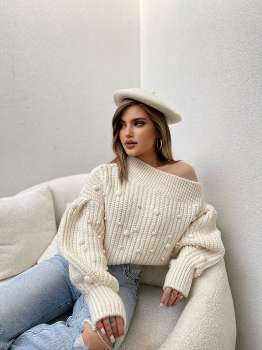 Pulover me motive me festa, me jake rrethore me menge te gjata me doreza ne...