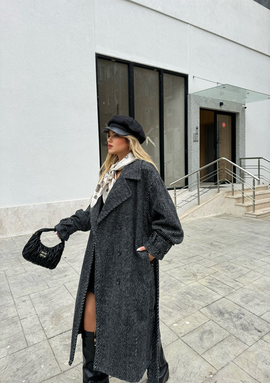 Pallto me viza dhe me rrip ne mes. Ka xhepa praktik. Mbyllet me kopsa para....