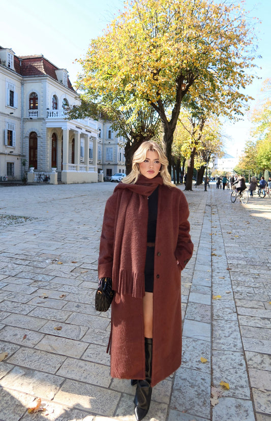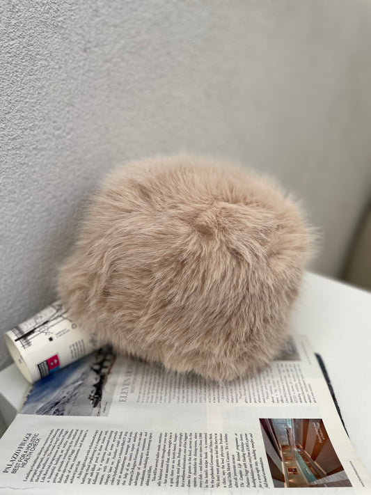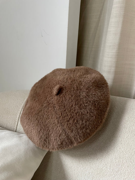 Beret me pellush kafe aksesor trendi qe shton stil dhe ngrohtesi çdo veshjeje.