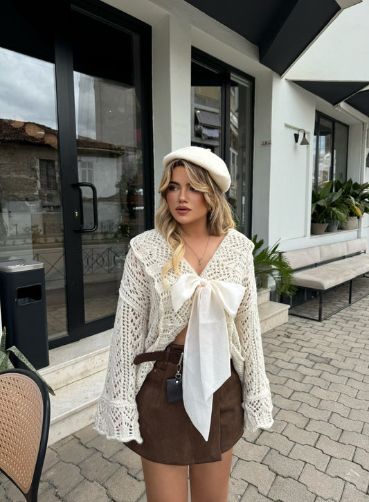 Pulover ne ngjyren bezhe, vjen me nje dizajn te vecante ne pjesen e jakes me...