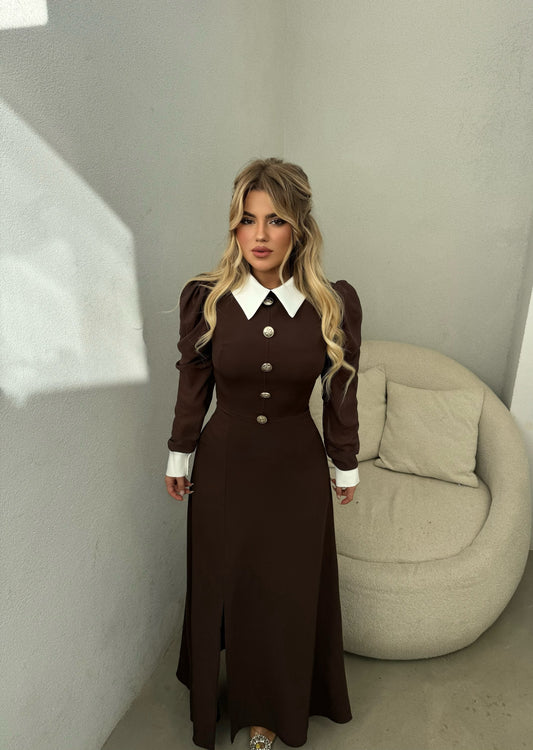 Fustan ne ngjyren kafe, vjen me nje dizajn teper te vecante eshte i mbushur me...