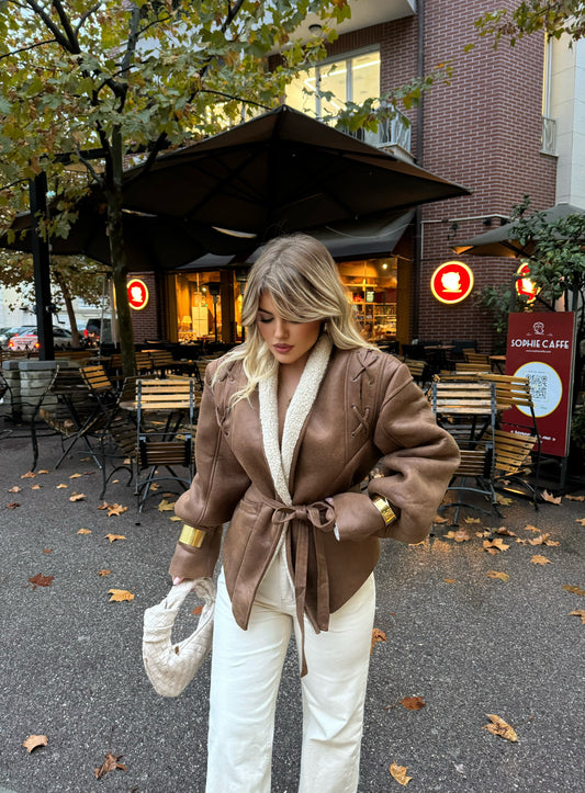 Pellush ngjyre kafe dhe pak nuance bezhe. Vjen ne modelin me te kerkuar, i shkurter...