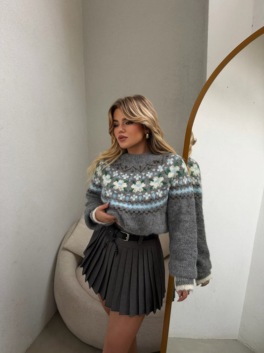 Pulover në ngjyrë gri me print lulesh, me mëngë të gjata. E rehatshem, ideal për...