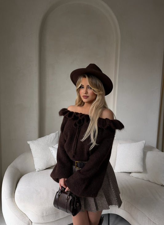 Pulover ne ngjyren kafe ne pjesen e jakes vjen me disa pala. Material i plote...