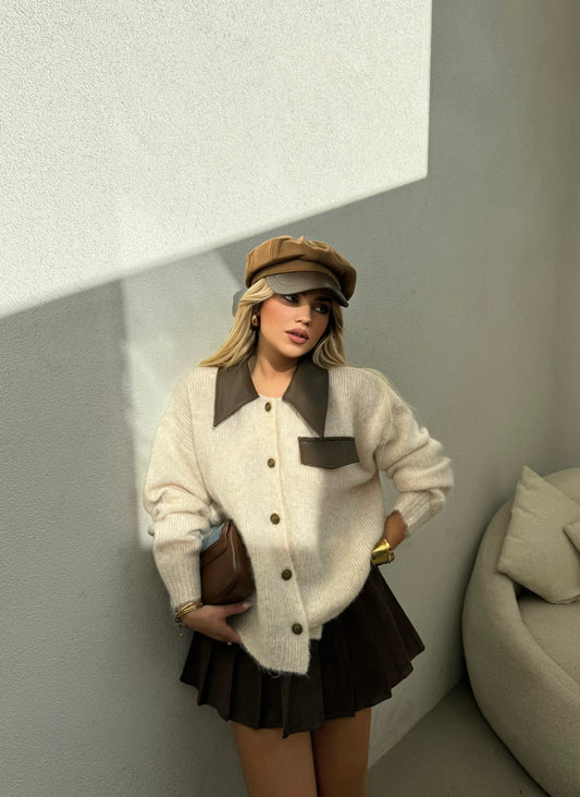 Pulover me kopsa perpara ne ngjyren kafe, ka nje dizejno teper te vecant. Material eshte i...