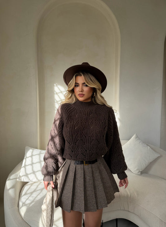 Pulover ngjyre kafe. Pulover e bute, e ngrohte e punuar ne detaj dhe super komode....