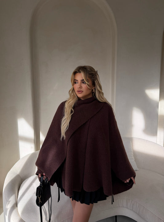 Pelerin ne ngjyren kafe vjen e shoqeruar me shalle, material i bute fhe i ngrohte....