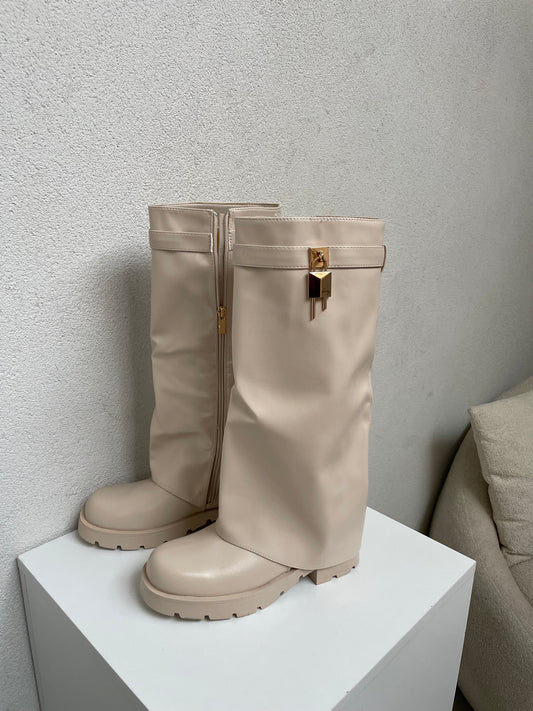 Cizme te bardha, te gjata deri mbi gju.Model modern qe kombinon stilin elegant me rehati.