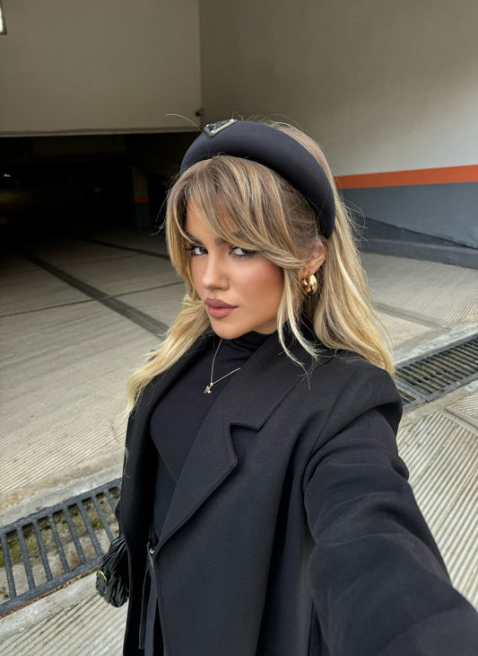 Rreth koke stilor ne ngjyre te zeze, i zbukuruar me detaje metalike “Prada” per nje...