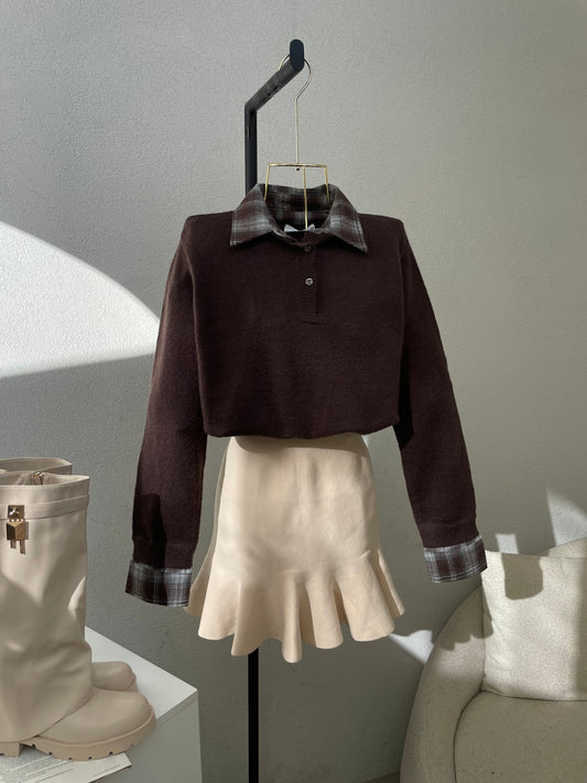 Fund modern ne ngjyre kafe dhe bezhe,me gjatesi te shkurter dhe pala te lehta ne...