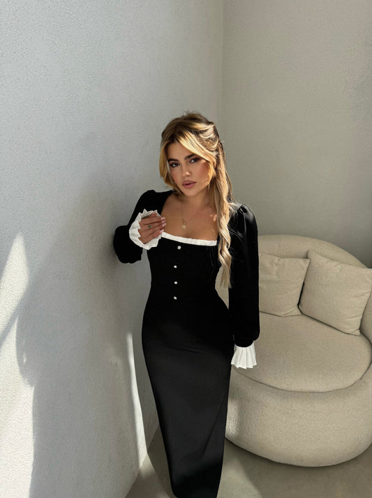 Fustan i gjatë i zi, pak i fryrë i thjeshtë, por i veçantë. Dhuron elegancë...