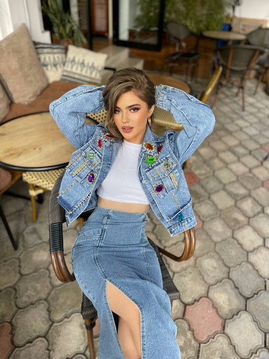 Xhakete xhins me gure me ngjyra ne pjesen perpara. Ka gjatesi normale dhe prerje te...