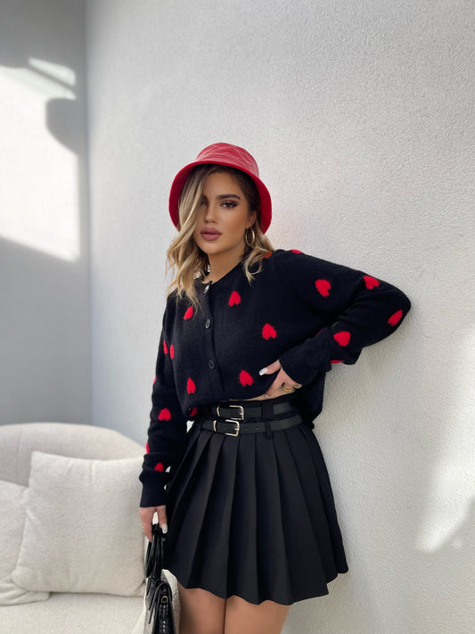 Bluze me kopsa me jake rrethoreme menge te gjata. Dizenjo me zemer te kuqe ne...
