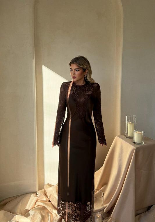 Fustan saten me krahe te gjata. Fustani vjen me nje dizajn te vecanta ne pjesen...
