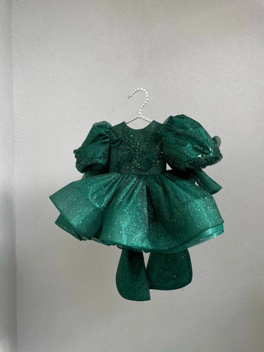 Fustan jeshil me xixa. Eshte i fryre dhe me fjongo je pjesen mbrapa. Ka material...