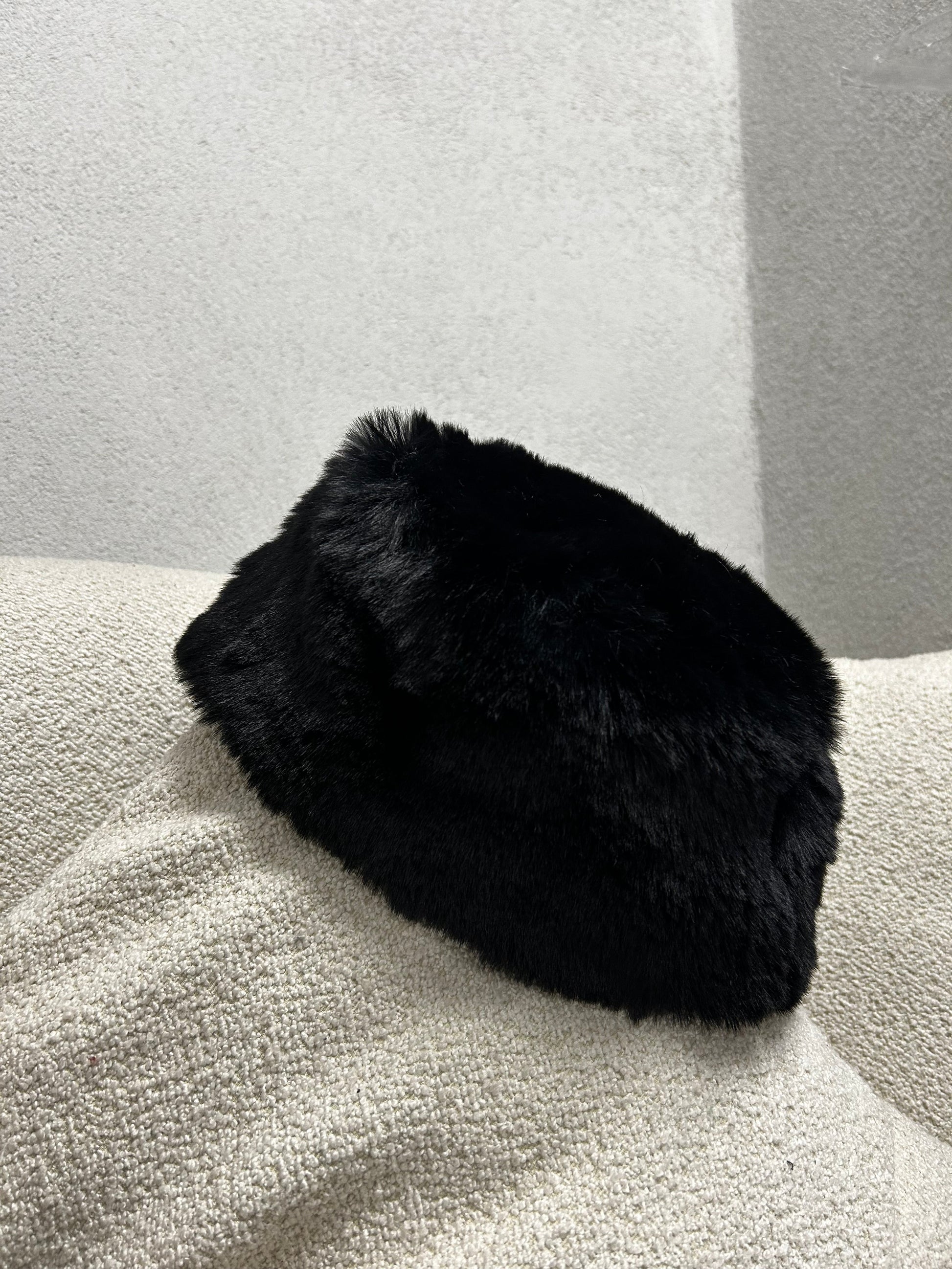Beret me pellush ne ngjyren e zeze,aksesor trendi qe shton stil dhe ngrohtesi çdo veshjeje.