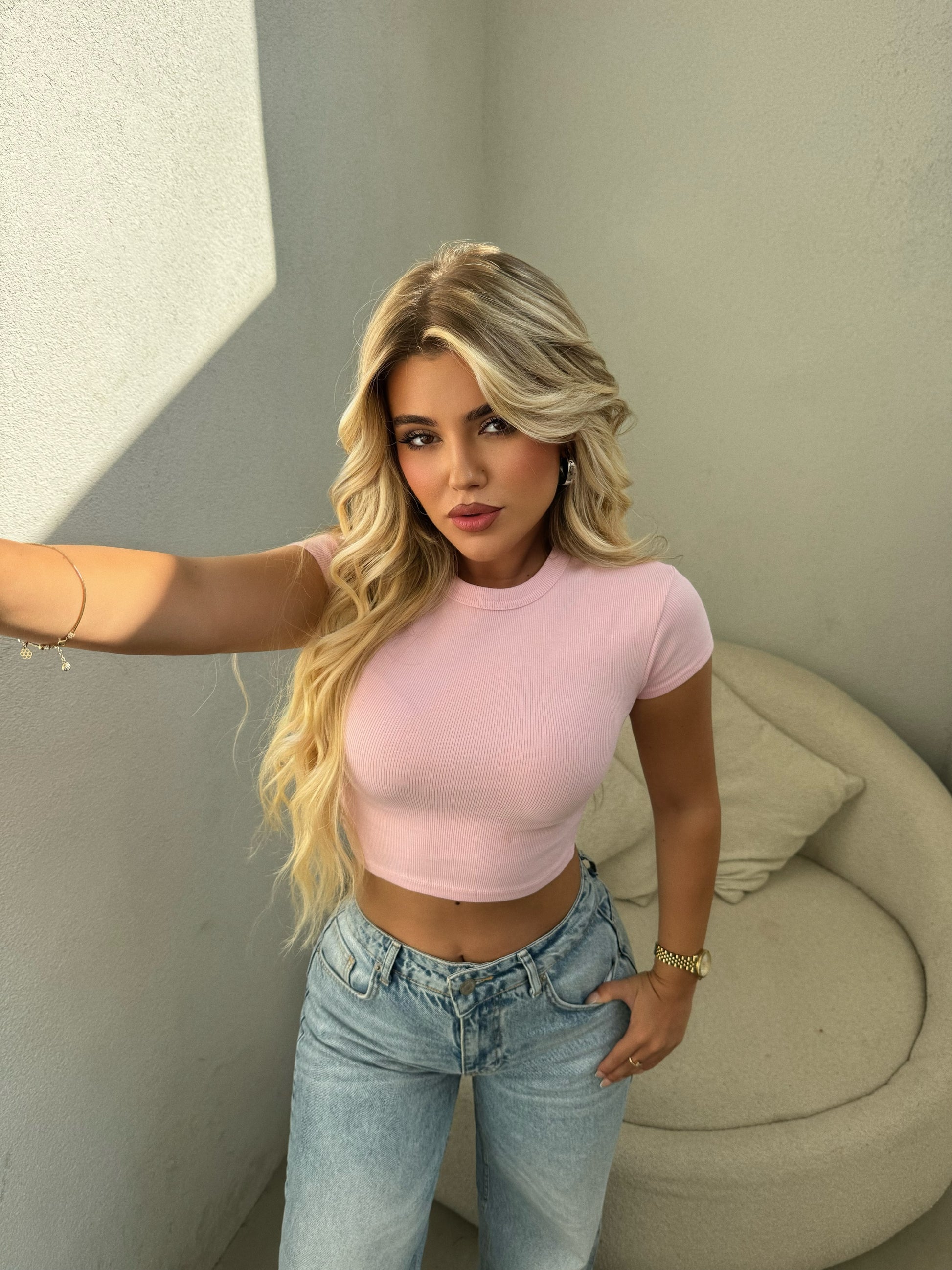 Bluze e thjeshte me menge te shkurter Vjen ne tri ngjyra super te bukura dhe te vecanta. Ka material te plote dhe mund ta kombinoni lehtesisht me cdo veshje.