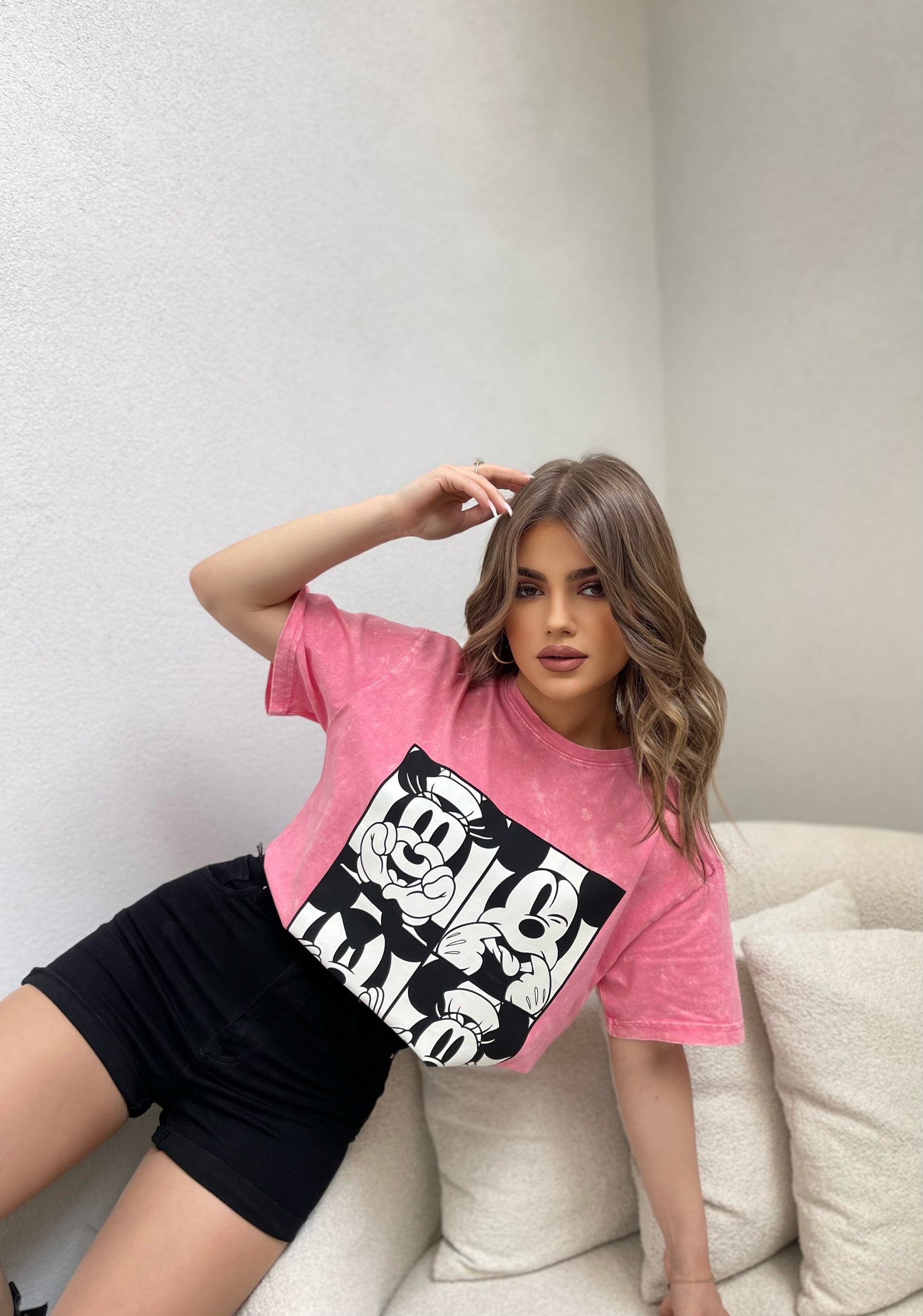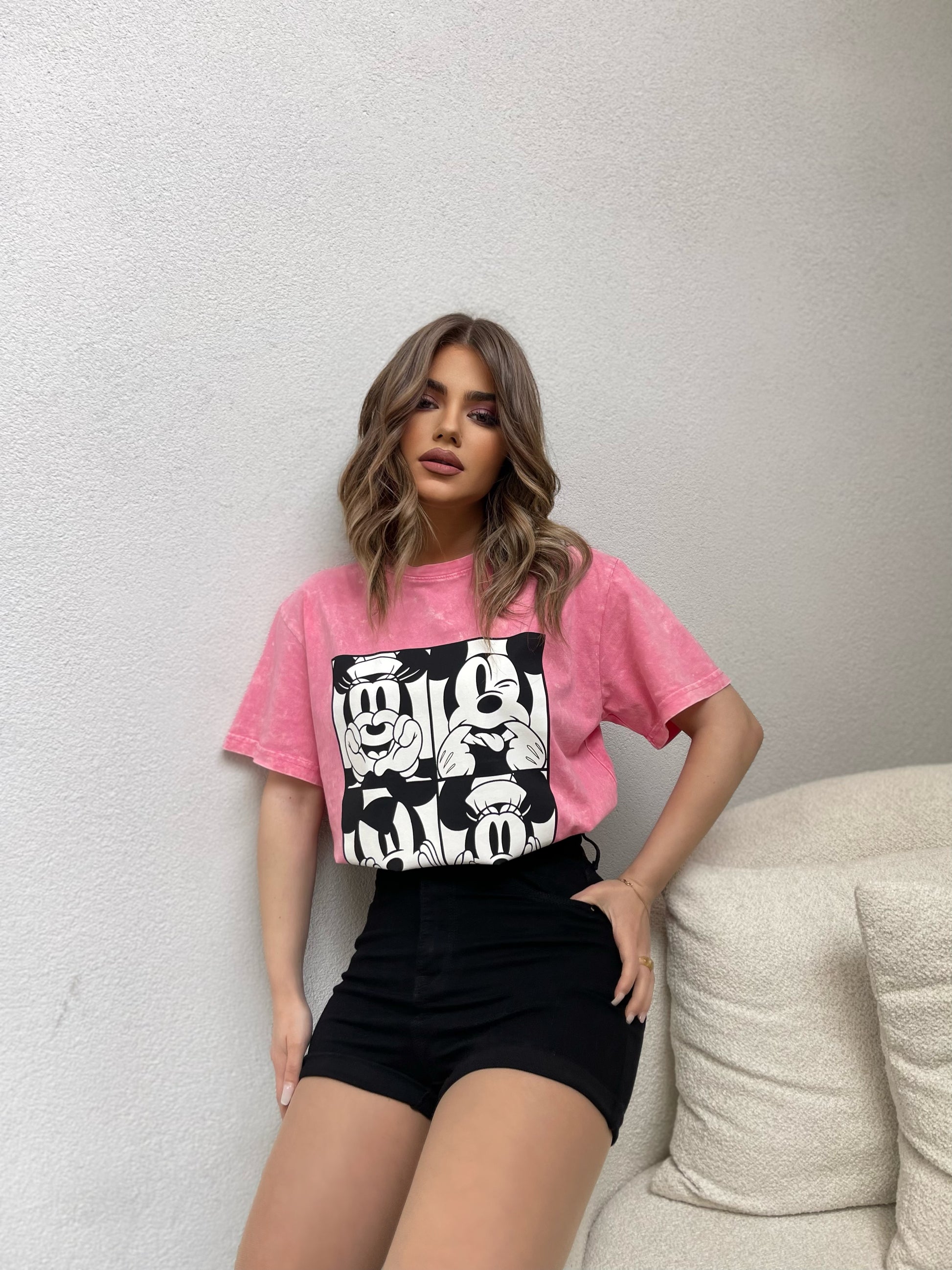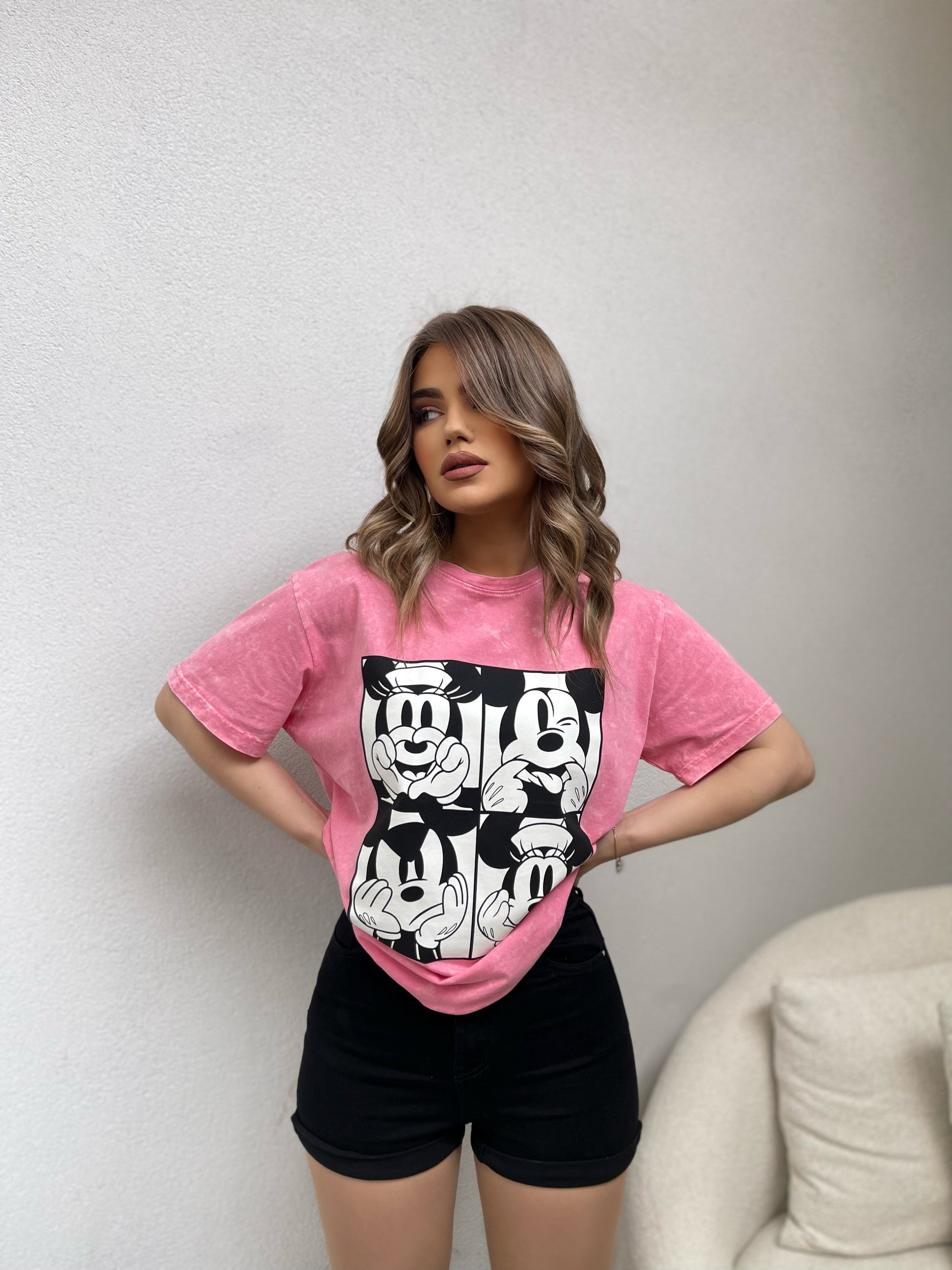 Bluze me krahe te shkurter me figuren e Mickey Mouse. Vjen ne ngjyren gri & roze. Material te plote dhe cilesi fantastike. Kombinohet lehtesisht me cdo veshje.