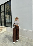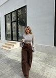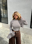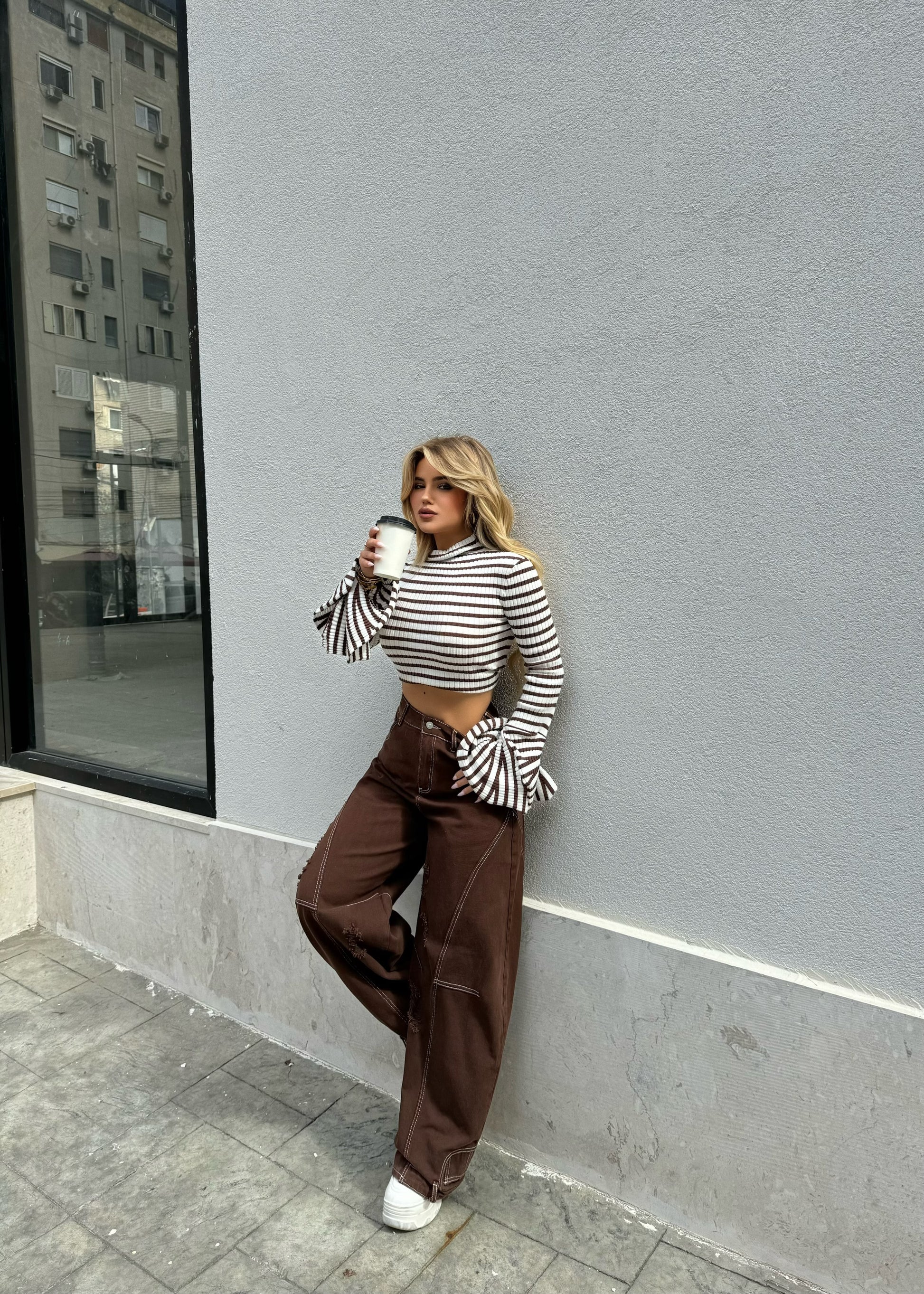 Bluze e bardhe me vija kafe dhe menge te gjera. Vjen ne material te plote, shume cilesor. Shume e vecante dhe e kombinueshme.