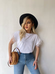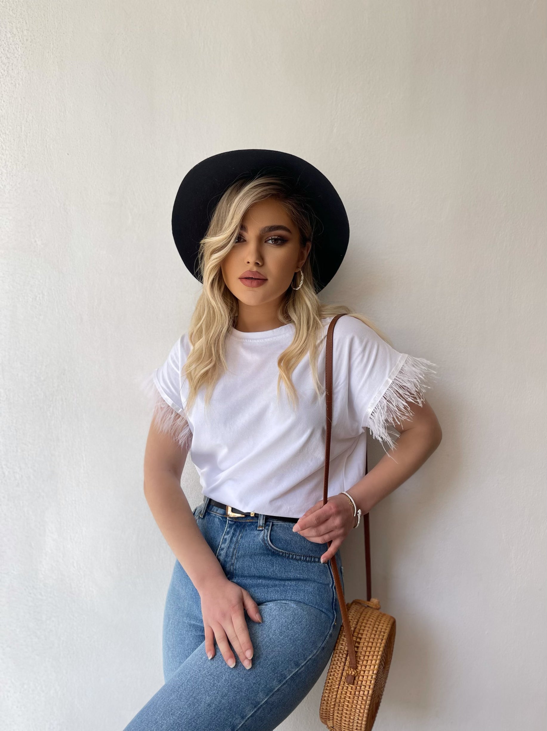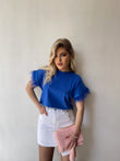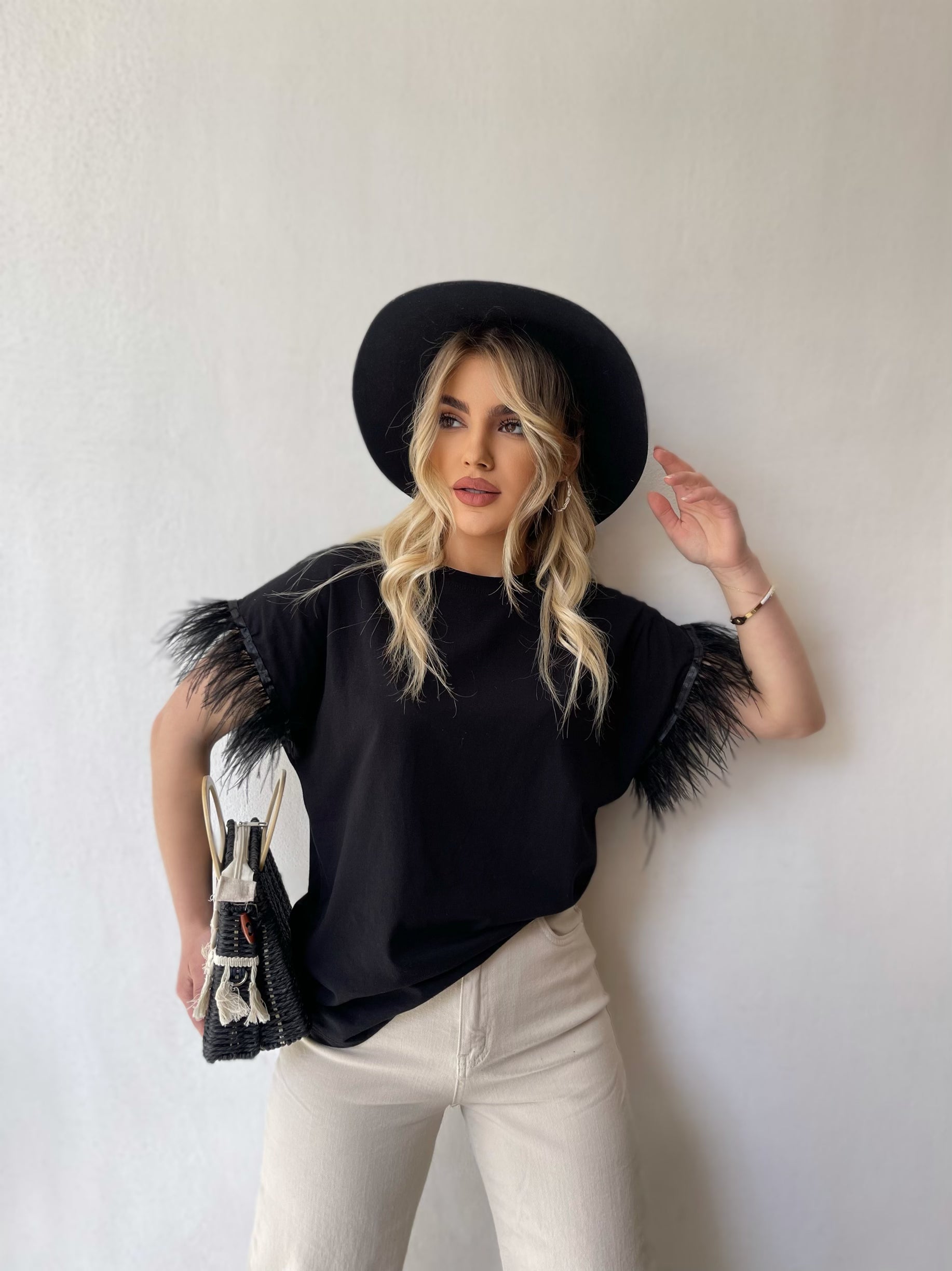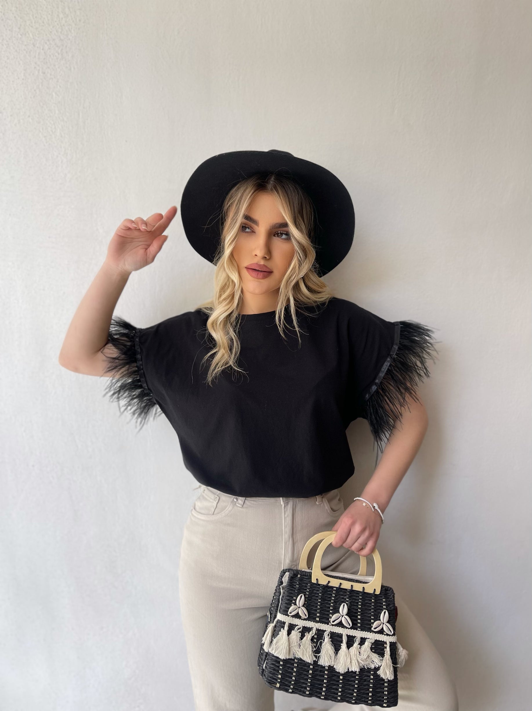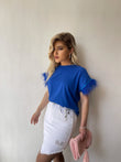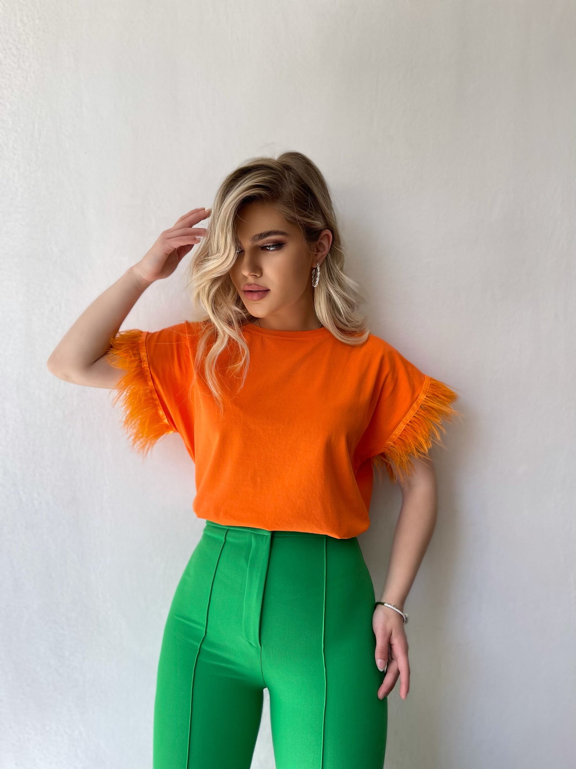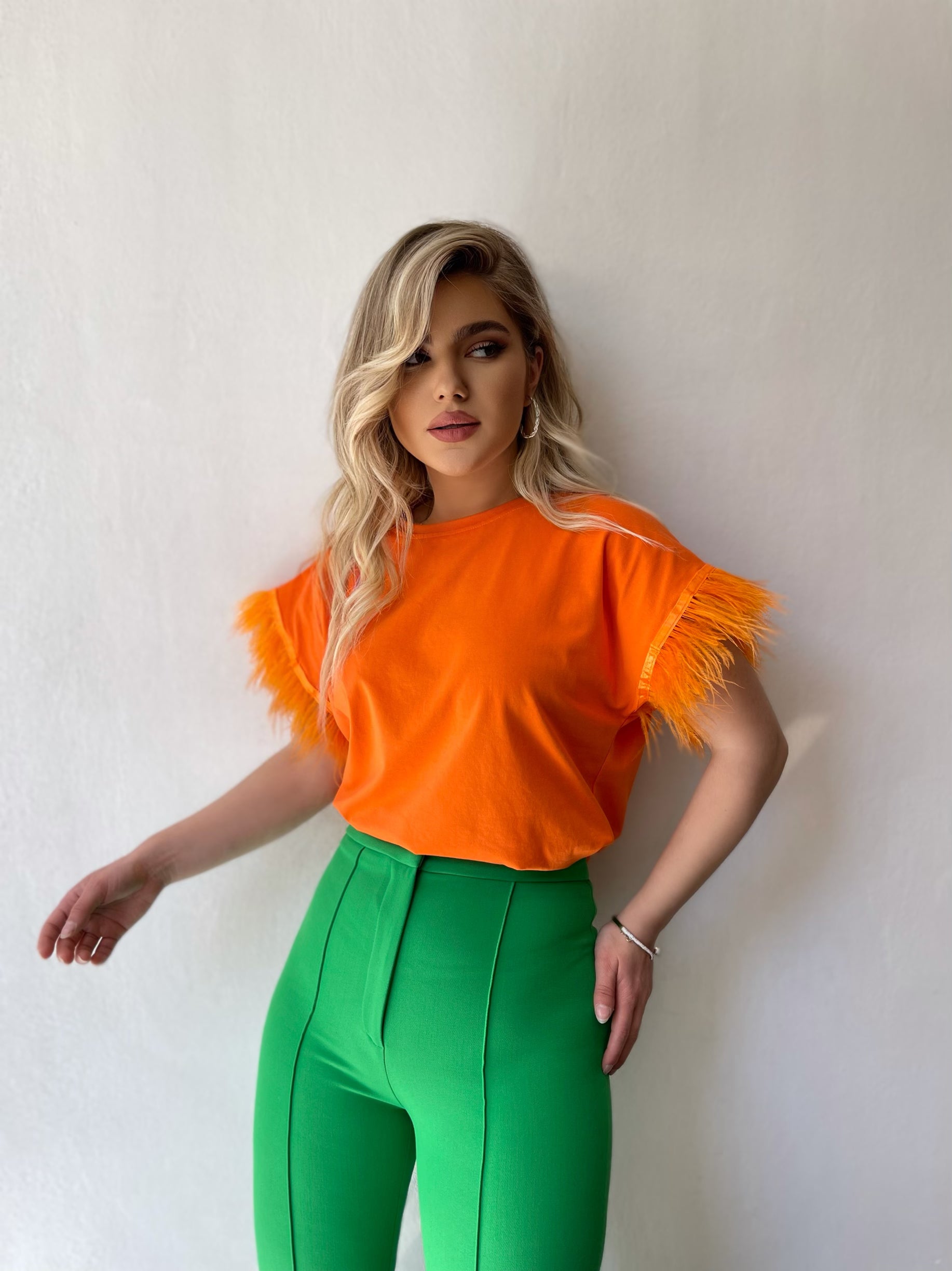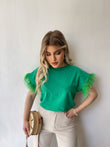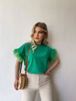 Bluze e lirshme me menge te shkurtra. Detaj jane puplat tek menget. Material i bute shume i mire. Vjen ne disa ngjyra: e zeze, e bardhe, portokalli, jeshile, blu.