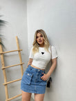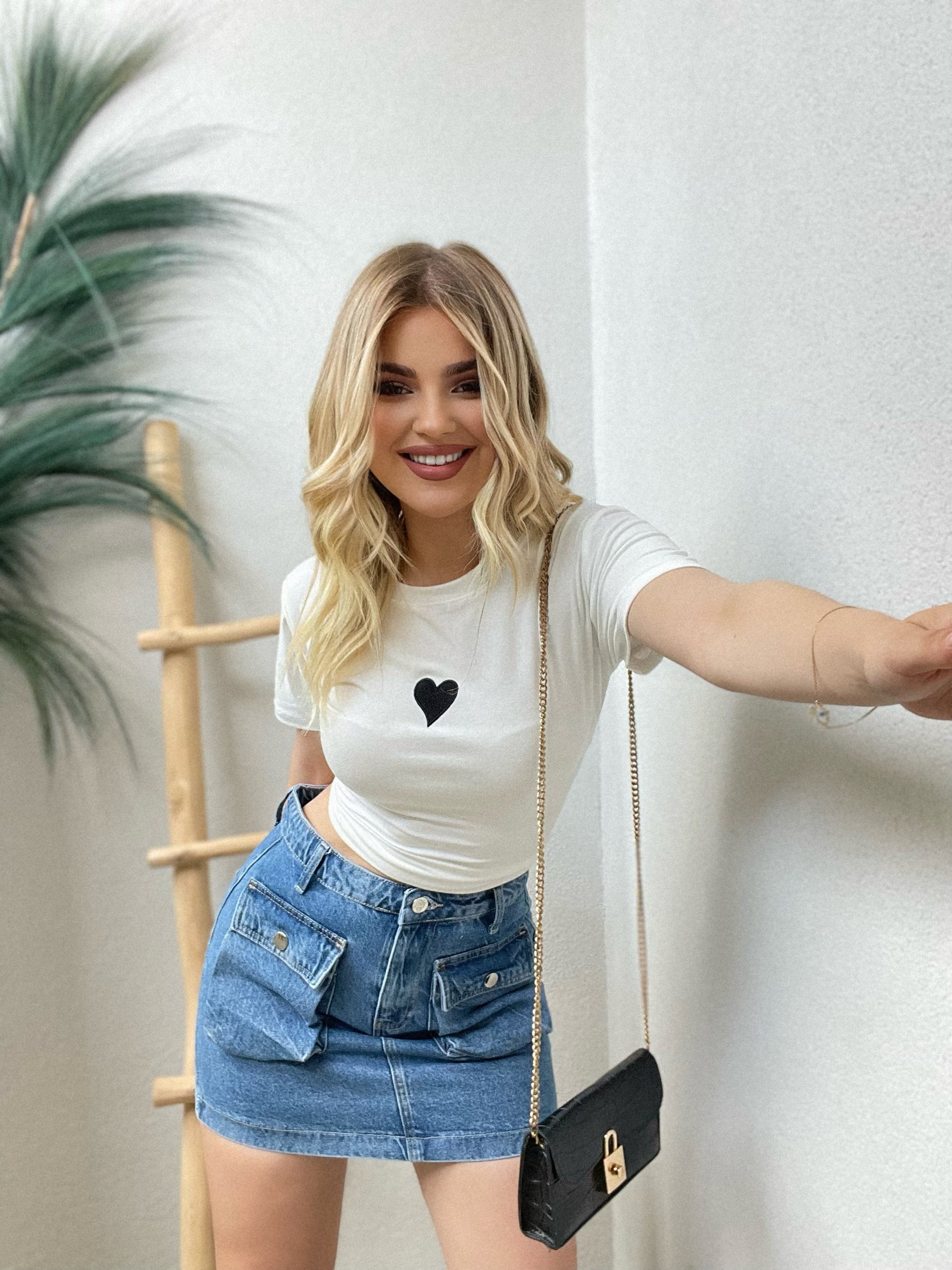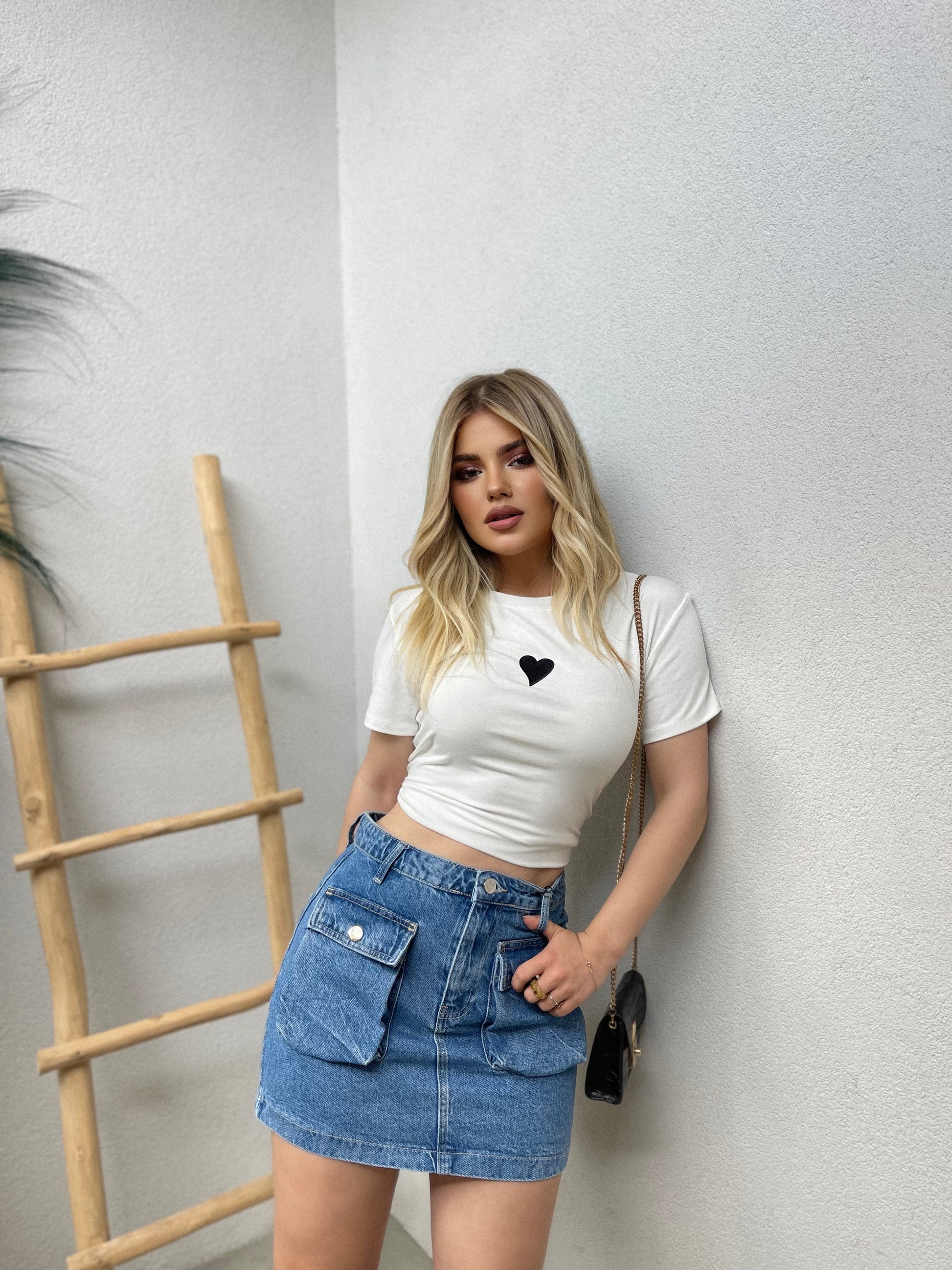 Bluze me krahe te shkurter me zemer perpara. Ka material te plote dhe cilesi fantastike. Kombinohet lehtesisht me cdo veshje.