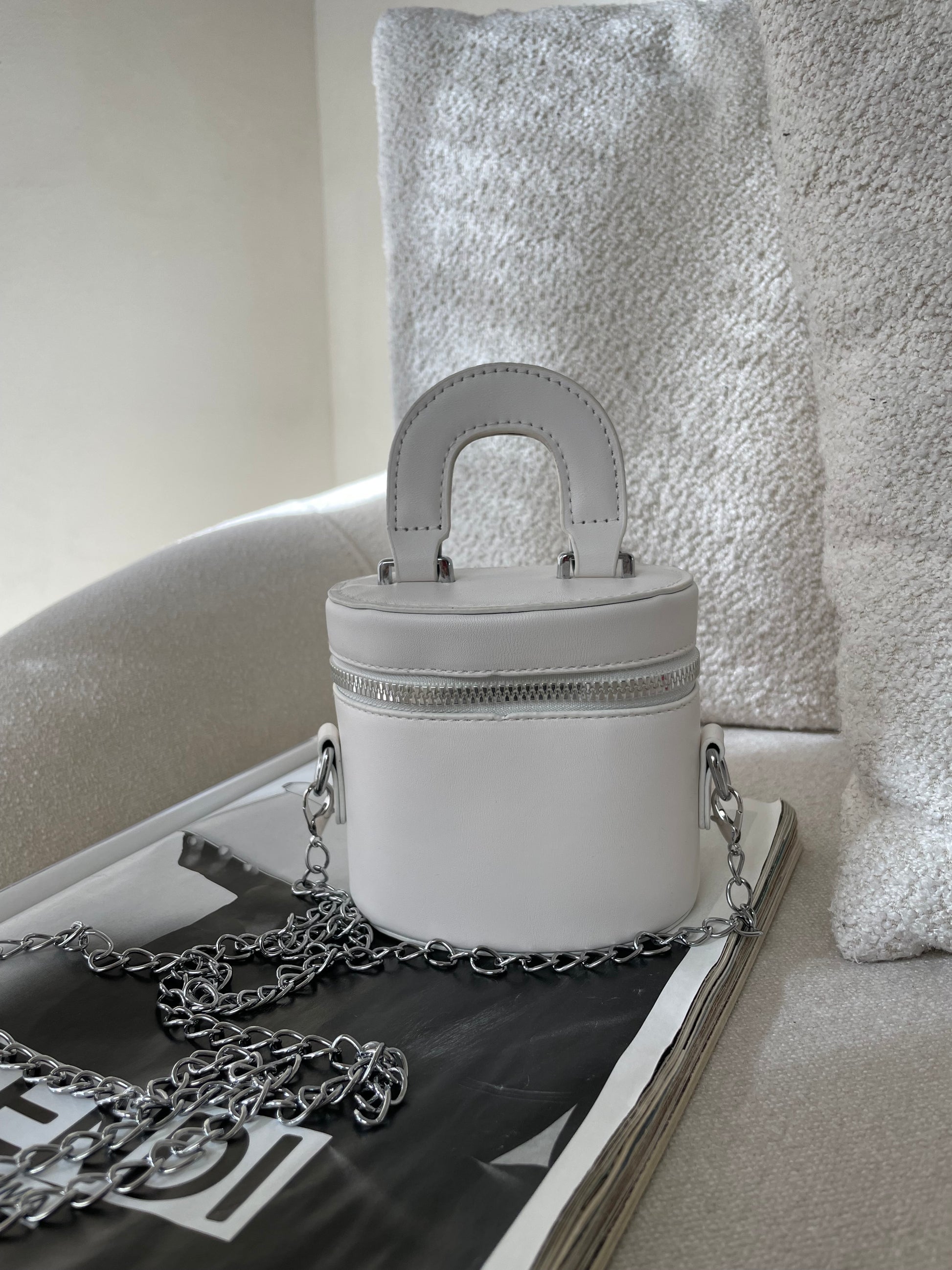 Cante e vogel ne ngjyren e bardhe. Eshte me zinxhir te gjate dhe mund ta kombinoni lehtesisht me cdo veshje. Cilesi fantastike.