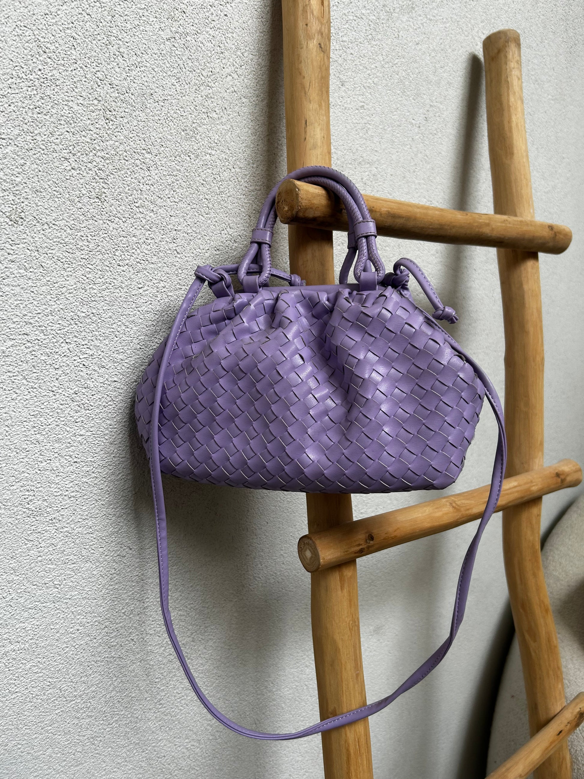 Çante e vogel lejla me rripa te vegjel dhe te ngrire. Lehtesisht te kombinueshme. Mberthimi behet me preçin te brendshme.