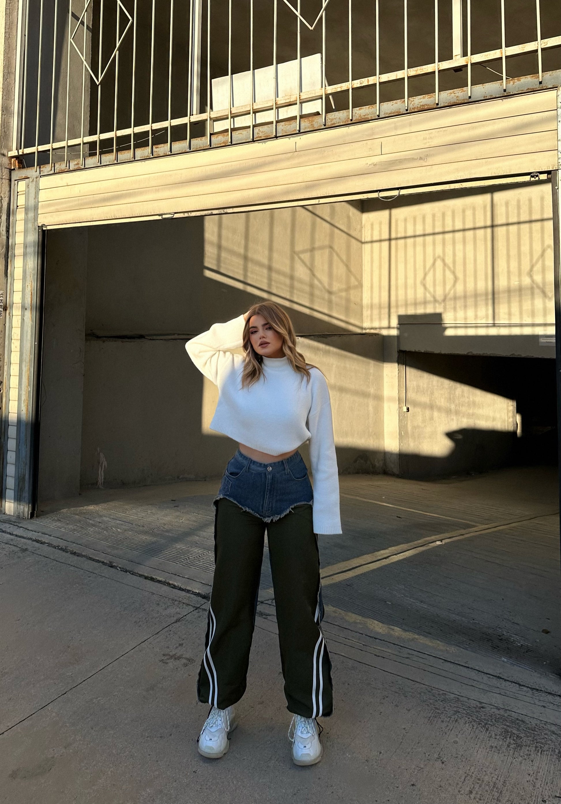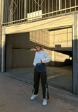 Pantallona te gjera me llastik tek kembet dhe feshe perpara. Ka material te plote dhe cilesi fantastike.